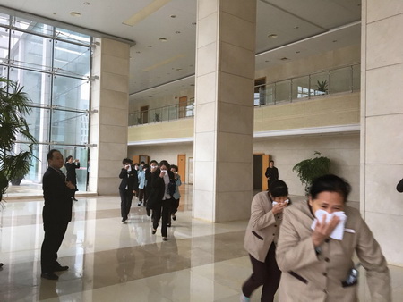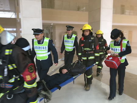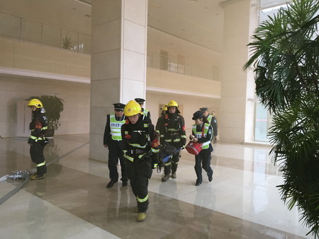 為進一步提高龍灣區(qū)行政中心保安人員消防安全意識,把機關(guān)消防安全貫穿于保安工作始終,全面完善應(yīng)急預案,確保更具針對性和實戰(zhàn)性,確保區(qū)行政中心消防安全萬無一失。11月25日,溫州市保安服務(wù)總公司駐龍灣區(qū)府保安大隊聯(lián)合龍灣區(qū)消防局在區(qū)行政管理中心開展消防演練,保安大隊、物業(yè)公司等70余人參加了這次消防疏散演練活動。 演練一開始,嗆人的紅色濃霧很快從一樓蔓延至四樓。不到10秒,煙霧警報響起,保安隊接到火警后迅速組織應(yīng)急分隊,滅火組、警戒組、疏散組、救護組等第一時間趕赴現(xiàn)場開展救援活動,同時報119,請求支援。樓內(nèi)工作人員在疏散組的努力下,用毛巾捂住口鼻,有序地從安全出口下樓離開。不到五分鐘,樓內(nèi)人員撤離完畢,而四樓的被困人員也在耐心地等待救援。 五分鐘后,水罐車、登高平臺消防車等兩輛消防車抵達現(xiàn)場。在火場指揮部的部署下,55米登高舉車隨即噴水撲救大樓“著火”區(qū)域,119滅火攻堅組、偵查組等消防員以最快速度沖進現(xiàn)場與保安滅火組開展滅火,迅速控制火勢,順利營救出“被困人員”。這只是區(qū)行政中心疏散演練活動中的一個場景。本次活動中,保安人員與消防局官兵組織工作人員開展火情報警、模擬火災(zāi)安全疏散等環(huán)節(jié)。同時,在演練中,消防局官兵為工作人員講解火災(zāi)的預防、逃生自救技能和滅火器等消防器材使用的消防知識,指出在演練過程中應(yīng)該注意的事項和錯誤之處,并實際操作了滅火過程,使工作人員進一步了解一旦火災(zāi)發(fā)生應(yīng)該做什么、如何報警、如何正確撲救、如何自救和逃生等技能。 通過此次演練,切實提高保安及工作人員在危險中迅速組織救火、疏散等突發(fā)事件的處置能力,為龍灣區(qū)行政中心的安全穩(wěn)定打下了堅實基礎(chǔ),在遇到突發(fā)事件時能迅速、高效、有序地開展防火滅火。
