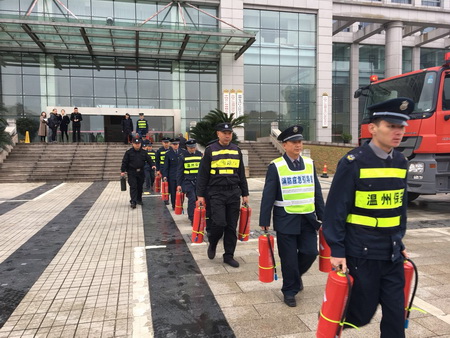 | 溫州市保安服務(wù)總公司龍灣區(qū)府保安大隊聯(lián)合龍灣區(qū)消防局開展消防演練 | |||