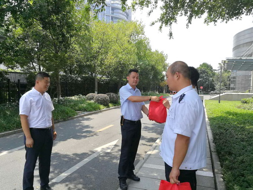 炎炎夏日,一線奮戰(zhàn)保安全,殷切關(guān)懷,酷暑慰問送清涼。 為切實做好防暑降溫工作,確保夏季安全工作的有序開展,7月30日上午,溫州市保安服務(wù)總公司市府大隊陳大隊長等一行向奮戰(zhàn)在一線的保安員們送去了防暑降溫物品,并捎上了公司領(lǐng)導(dǎo)深切的慰問。 慰問中,陳大隊長首先對不畏酷暑、堅守崗位的隊員們表達(dá)了衷心感謝和敬意,叮囑大家要合理地安排工作和休息時間,切實做好高溫期間的防暑降溫工作,注意勞逸結(jié)合,做到工作健康兩不誤;同時希望隊員們繼續(xù)發(fā)揚(yáng)不怕苦不怕累的工作作風(fēng),再接再厲,進(jìn)一步提升保安服務(wù)水平,為市行政中心創(chuàng)造更加安全、優(yōu)美的辦公環(huán)境而努力。 |